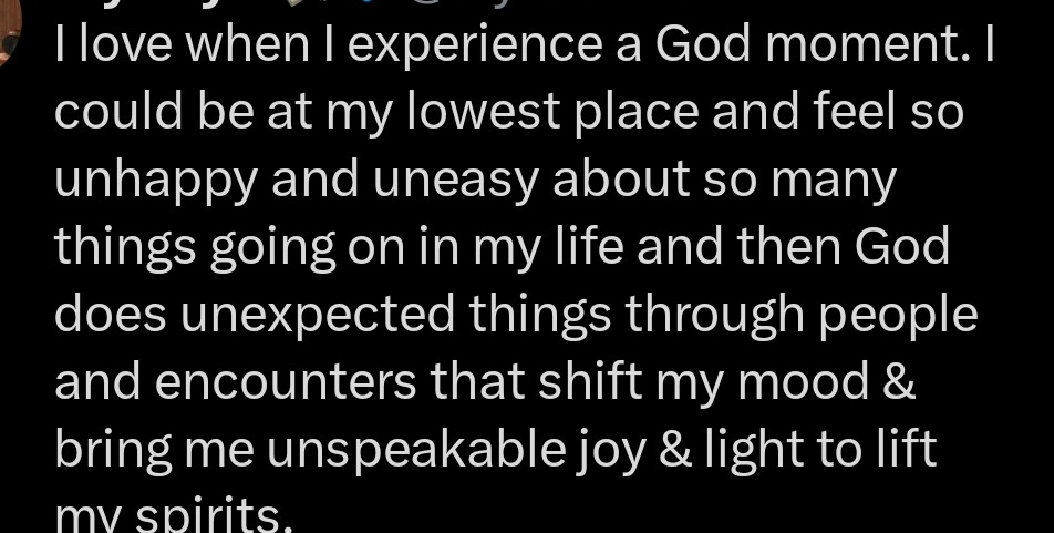 āFor the first time since being back, I cried. And these were premium tearsāthose tears you shed at 1:06 AM on a Saturday, looking ahead to another day of doing absolutely nothing. Honestly, letās just blame Maverick City; their lyrics hit hard!ā Journal entry [01/09/24]